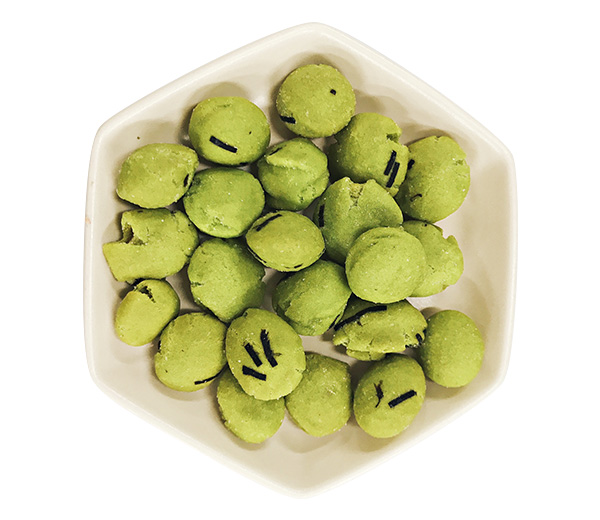 | 成分 | 落花生(中国又はブラジル)、小麦粉、砂糖、澱粉、寒梅粉ミックス(澱粉、もち米)、植物油、水飴、乳化調味料(植物油、還元澱粉糖化物、蛋白加水分解物、醤油)、食塩、海苔、粉わさび/香辛料抽出物、膨張剤、調味料(アミノ酸等)、着色料(黄4、青1)、酸化防止剤(V.E、V.C)、ビタミンC、酸味料、(一部に落花生・小麦・大豆を含む)※落花生の産地は過去3年間の使用実績順 |